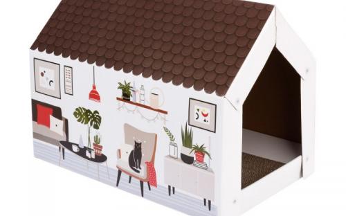 Domeček XL z kartonu na hraní a škrábání  pro kočky