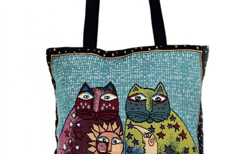 Dvě ucha o délce 60 cm. Vrchní zavírání tašky s kočkami je na zip.