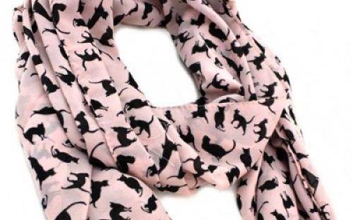 Krásný  šál s motivem malých  kočiček, velmi jemný a příjemný na těle, neklouže,  šál je dostatečně dlouhý a dobře se aranžuje.